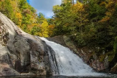 Yellow Branch Falls Trail, a moderately difficult three-mile round-trip path, leads to its namesake waterfall, a 50-foot scenic cascade.