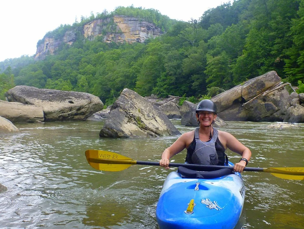 “In 1982, Cynthia Grimes and her husband were seeking more whitewater kayaking experiences and joined the Bluegrass Wildwater Association, Inc., a Kentucky organization that supports river recreation and wilderness waterways. She continued to paddle when she was pregnant with her daughter, Emily Grimes, who says she “grew up in parking lots at the Ocoee and Gauley.”